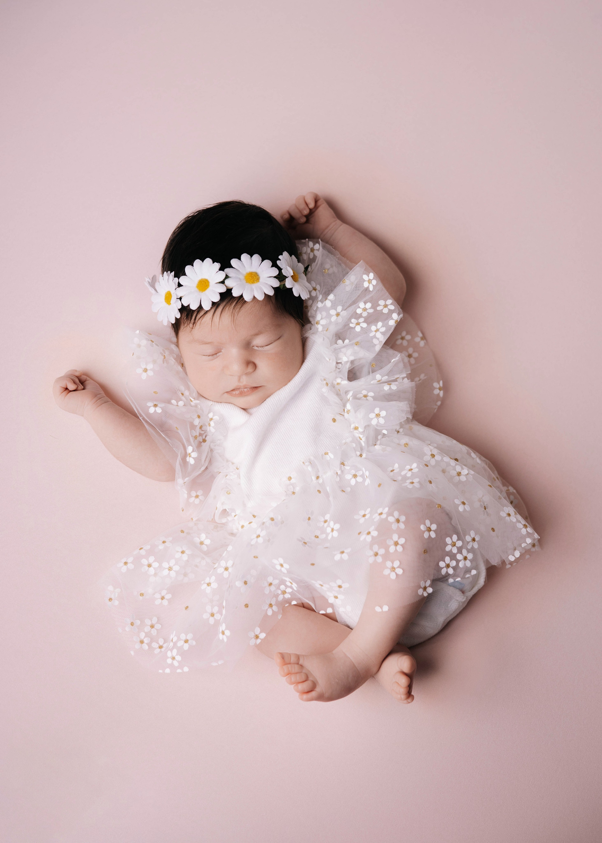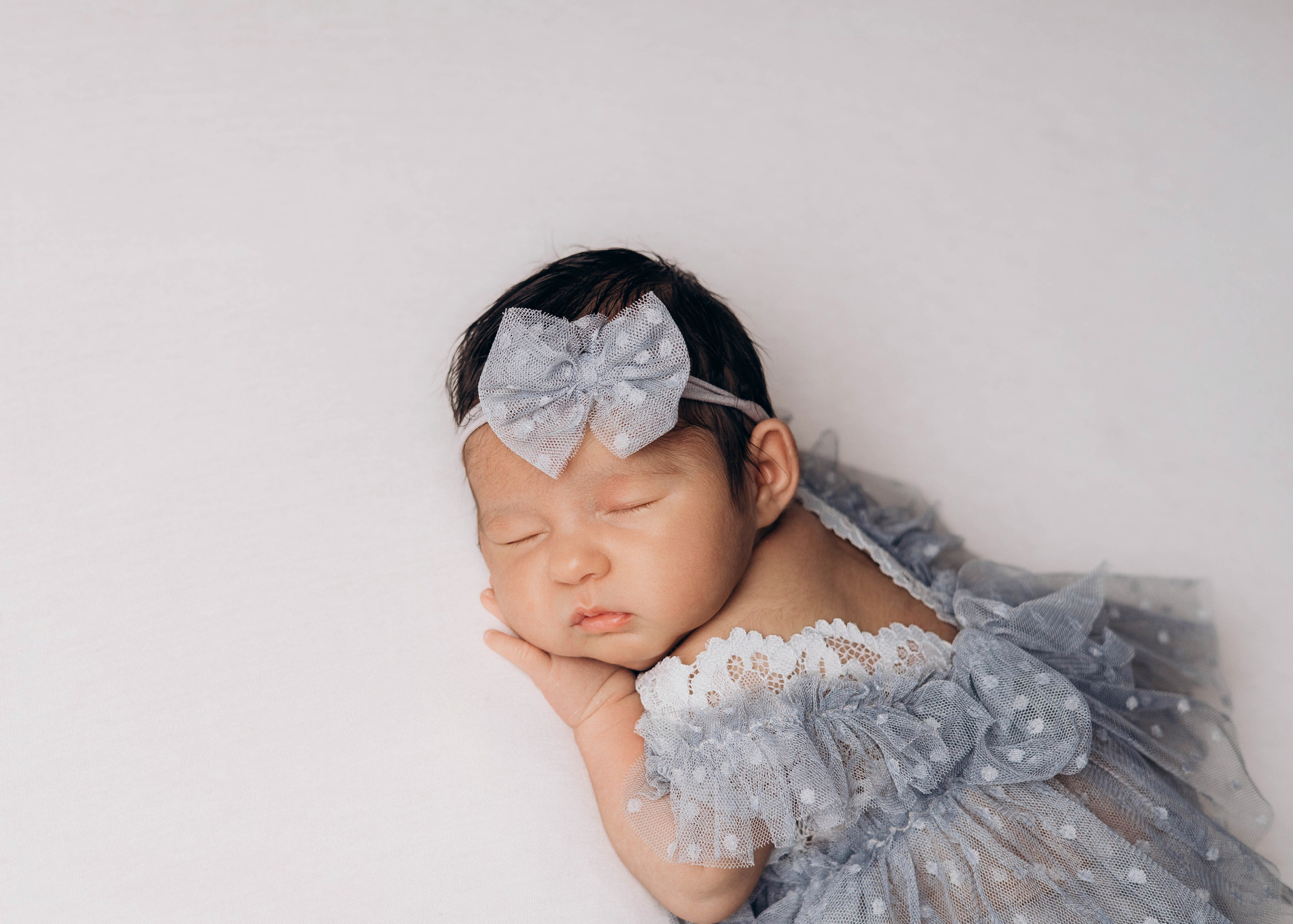 Длительность фотосессии зависит от настроения малыша, обычно занимает 2-4 часа. Но бывают исключения и съемка может длится дольше. Основное время уходит на переодевание, кормление, гигиенические процедуры и подбаюкивание малыша.
